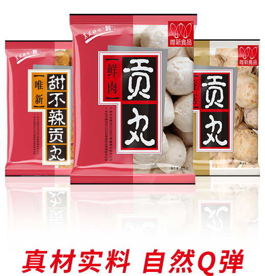 • 選擇蛋白質(zhì)含量及新鮮度高的豬后腿肉為原料,模擬手工捶打的打漿工藝,再經(jīng)煮制、冷卻、速凍工藝才可生產(chǎn)出自然脆彈的唯新貢丸,是居家佐餐、火鍋的美味食品。近年來我們還研發(fā)生產(chǎn)了香腸、蝦滑、魚丸、牛肉丸等大眾喜愛的家庭火鍋料速凍食品。