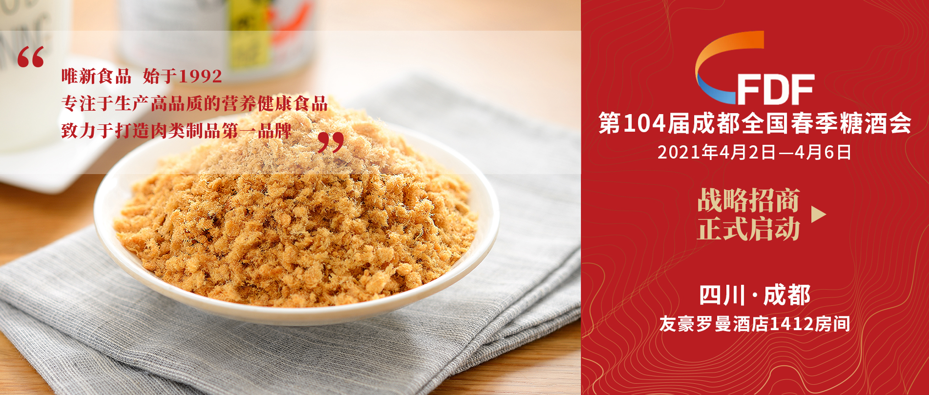 2021年4月2日,唯新食品參展第104屆全國糖酒會。展會上,唯新食品攜肉酥、休閑全系列干貨產(chǎn)...
